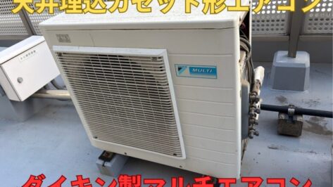 東京都小平市にて天井埋込カセット形エアコンのマルチエアコンの交換を行いました。天井埋込カセット形エアコンやマルチエアコンを交換ご希望の方、お考えの方は是非ご参考にしてください。